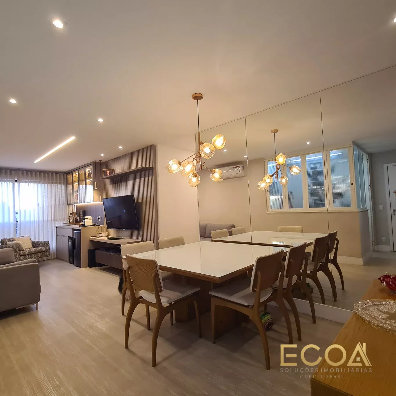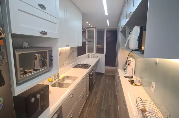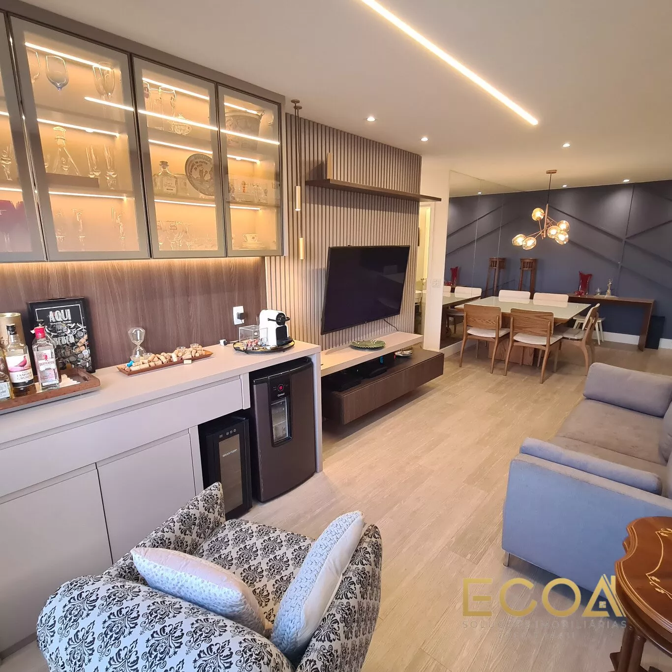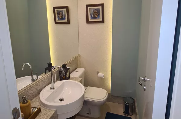 Lindo apto de canto com 3 quartos, sendo 1 suíte, 2 semi-suítes, lavabo, sala de jantar e estar ampliada e decorada com cristaleira, cozinha completamente reformada e moderna com espaço ampliado, instalação de coifa com saída de ar, cristaleira, bancada de café e janela para a sala, integrando os ambientes e também mantendo a privacidade da cozinha, área de serviço reformada com banheiro completo.